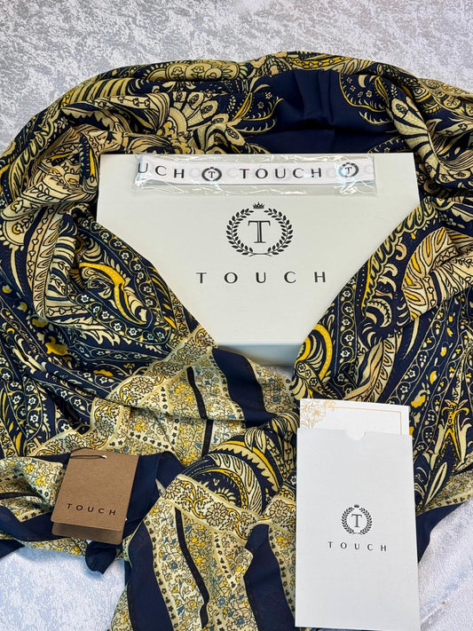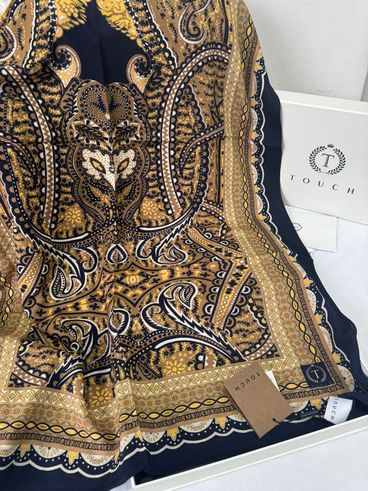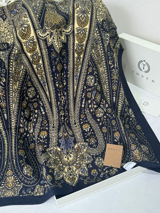 Touch İthal Etnik Desen Pamuk İpek Şal- 35440 - Lacivert Vizon
