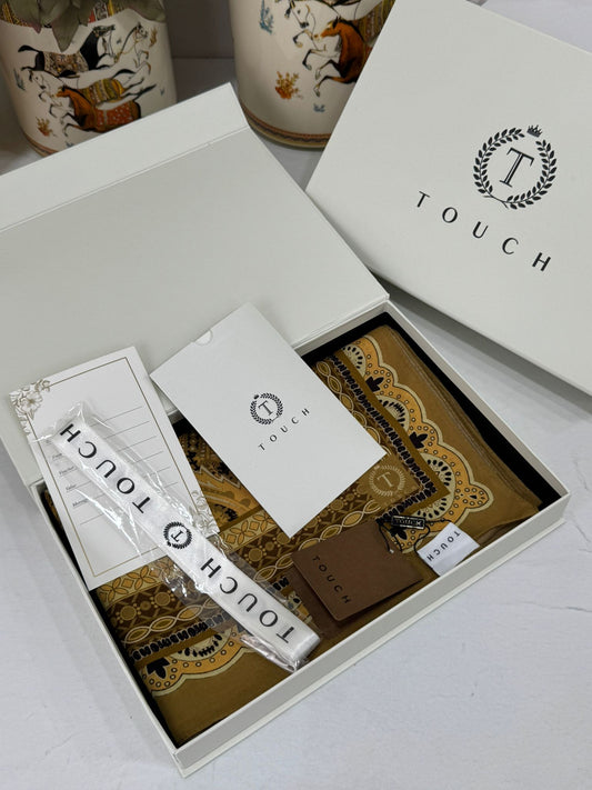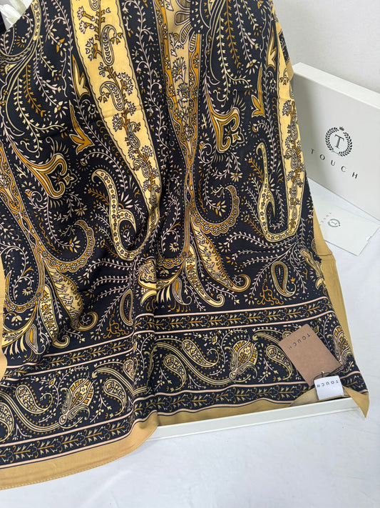 Touch İthal Etnik Desen Pamuk İpek Şal 63459- Hardal