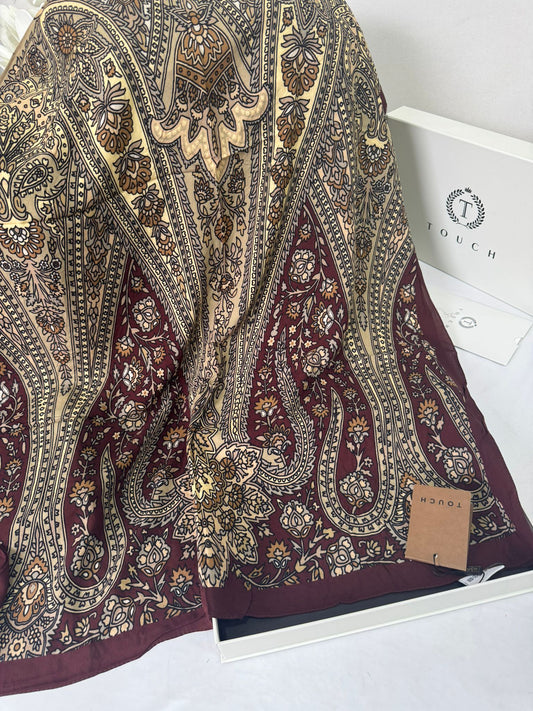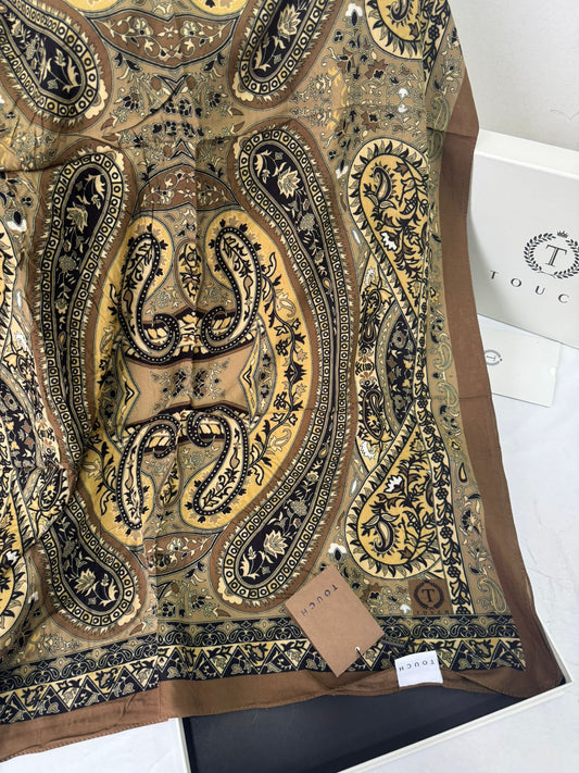 Touch İthal Etnik Desen Pamuk İpek Şal- 35440 - Kahve