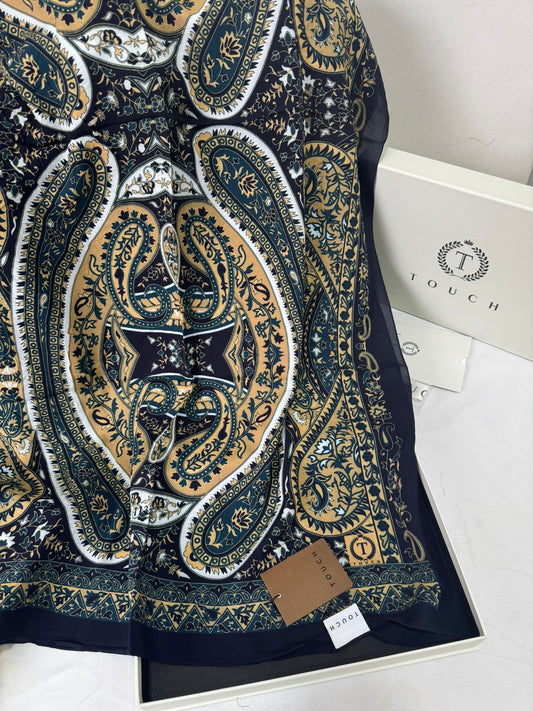 Touch İthal Etnik Desen Pamuk İpek Şal- 99880 - Siyah Lacivert