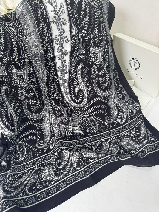 Touch İthal Etnik Desen Pamuk İpek Şal 63460- Siyah