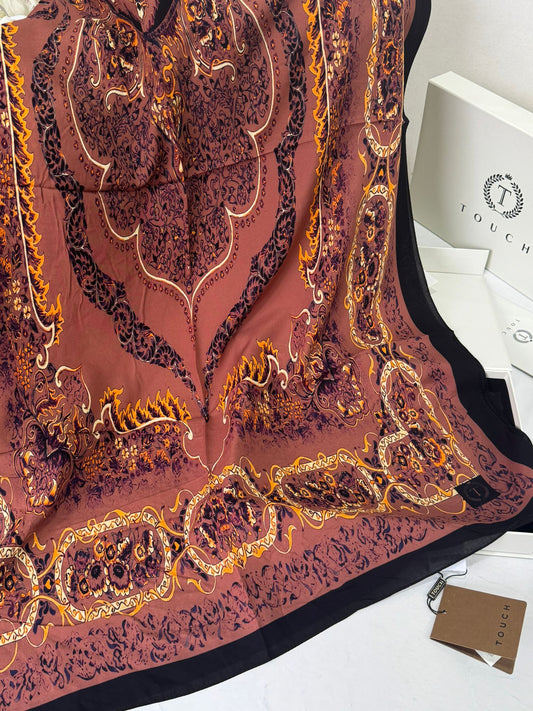 Touch İthal Etnik Desen Pamuk İpek Şal 63460- Siyah Kahve