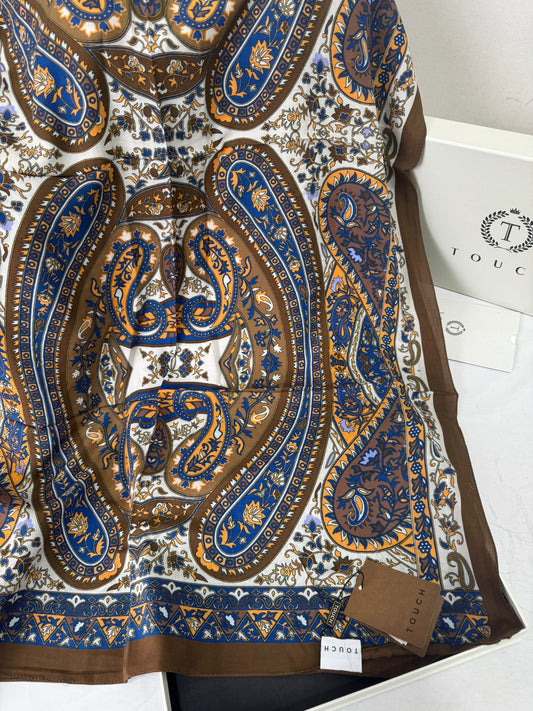 Touch İthal Etnik Desen Pamuk İpek Şal- 35440 - Kahve Lacivert