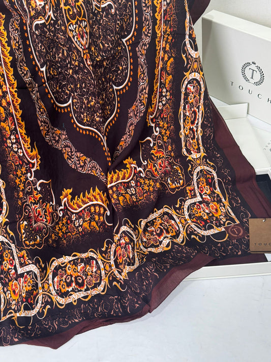 Touch İthal Etnik Desen Pamuk İpek Şal- 99990 - Acı Kahve