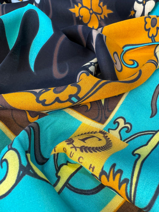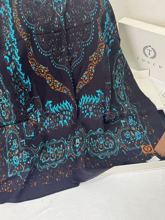 Touch İthal Etnik Desen Pamuk İpek Şal- 99990 - Siyah Turkuaz