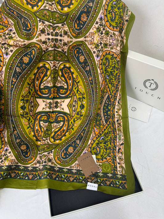 Touch İthal Etnik Desen Pamuk İpek Şal- 35440 - Yeşil
