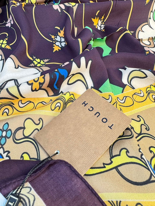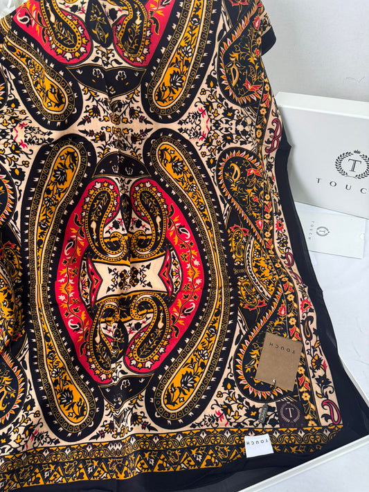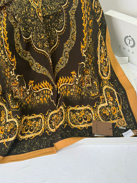 Touch İthal Etnik Desen Yün İpek Şal- 34660 - Siyah Kahve