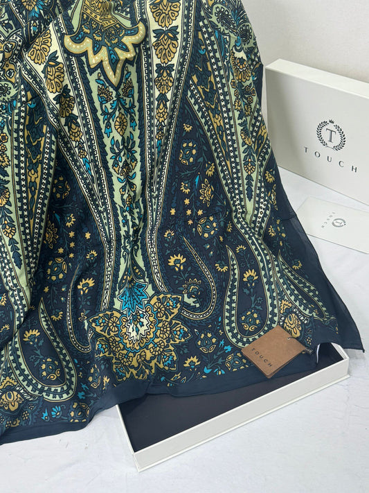 Touch İthal Etnik Desen Pamuk İpek Şal 63459- Lacivert Mavi