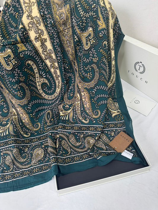 Touch İthal Etnik Desen Pamuk İpek Şal 63459- Koyu Yeşil