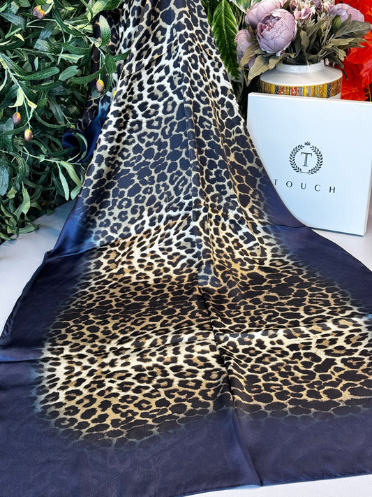 Touch İthal Leopar Vual İpek Şal - 998890 - Lacivert