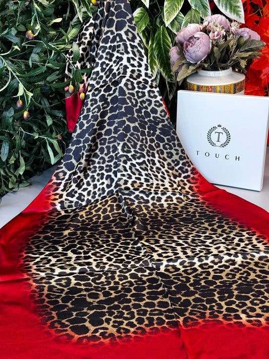Touch İthal Leopar Vual İpek Şal - 998890 - Bordo