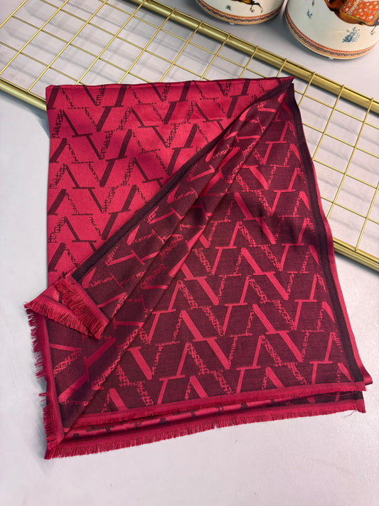 Valentino Çift Taraflı İtalyan Pamuk İpek Şal 44117 - Bordo