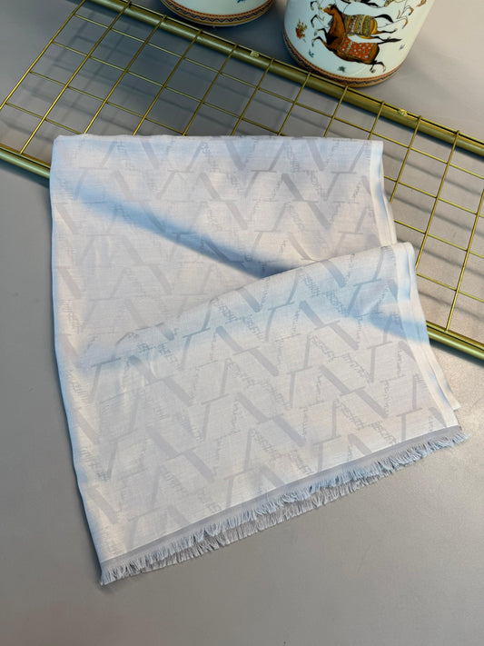 Valentino Çift Taraflı İtalyan Pamuk İpek Şal 44117 - Gümüş