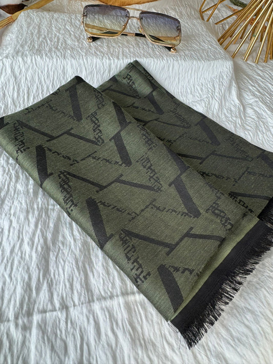 Valentino Çift Taraflı İtalyan Jakar İpek Şal 44117 - Haki
