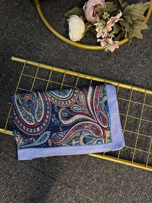 Ysl Desen Kendinden Dokulu Desenli İtalyan Şal-10010-Kot mavi