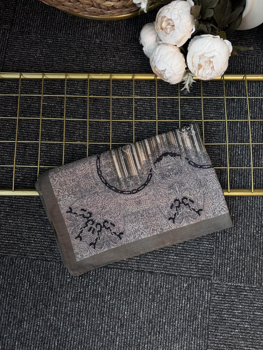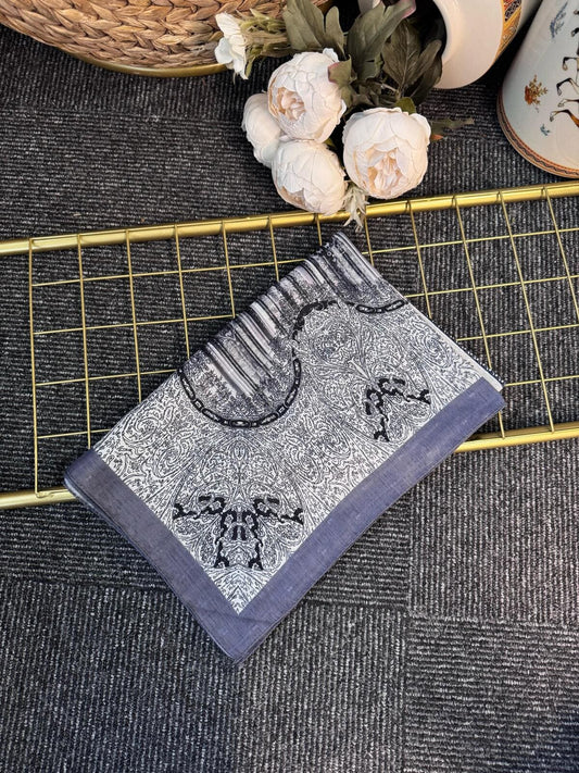Etnik Floral Desenli Naturel İpek Şal -050607-Gri