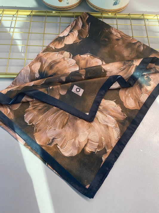 Etnik Floral Desenli Naturel İpek Şal -050607-Kahve