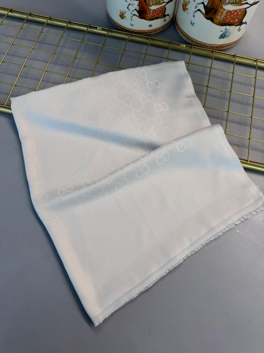 G Desen Kendinden Dokulu Desenli İtalyan Şal-10009- Beyaz
