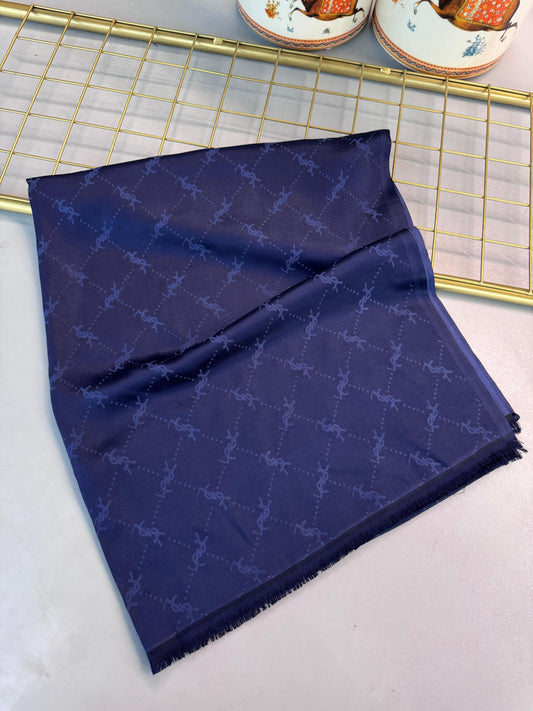 Ysl Desen Kendinden Dokulu Desenli İtalyan Şal-10010-Lacivert