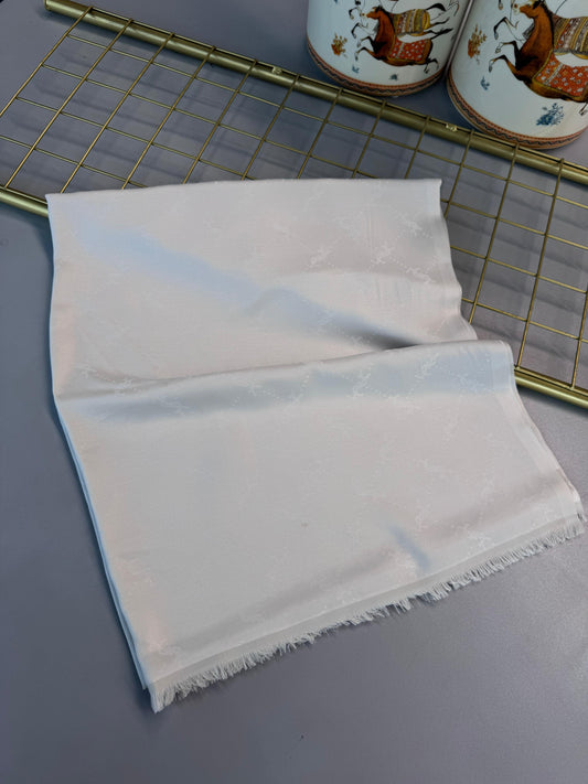 Ysl Desen Kendinden Dokulu Desenli İtalyan Şal-10010-Beyaz