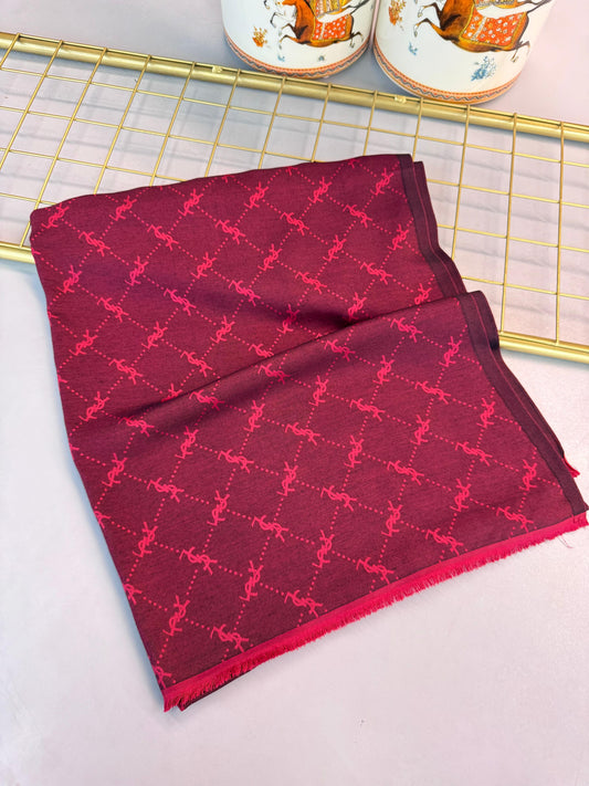 Ysl Desen Kendinden Dokulu Desenli İtalyan Şal-10010-Kırmızı