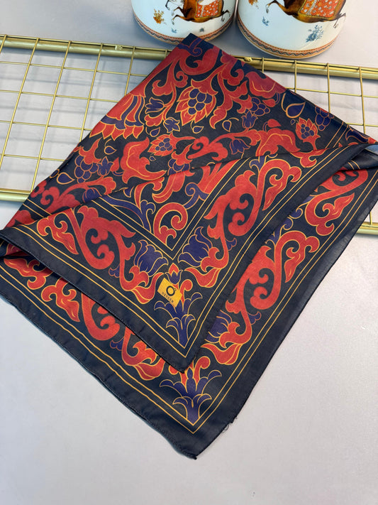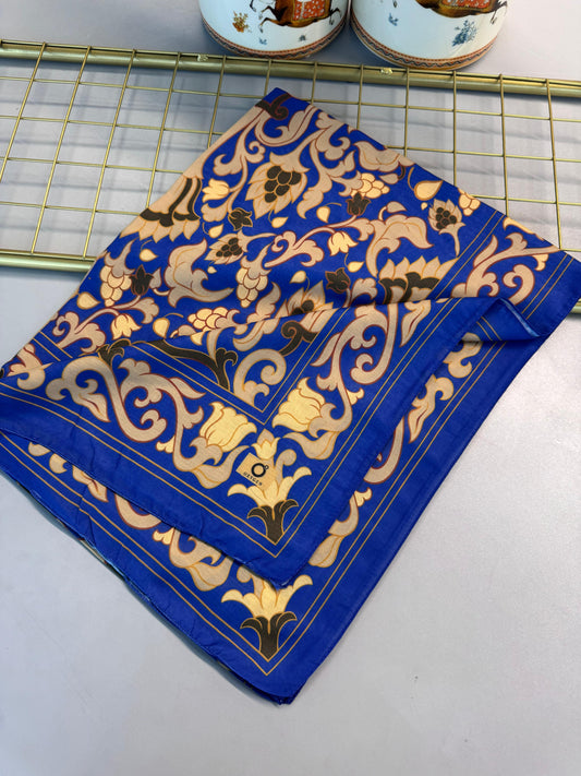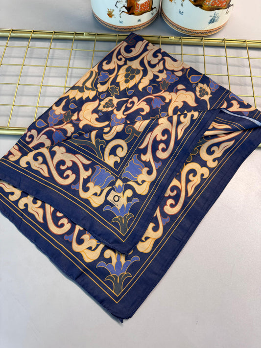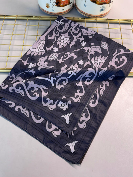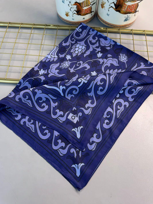 Lilyum Desen Pamuk İpek Şal-10008-Lacivert