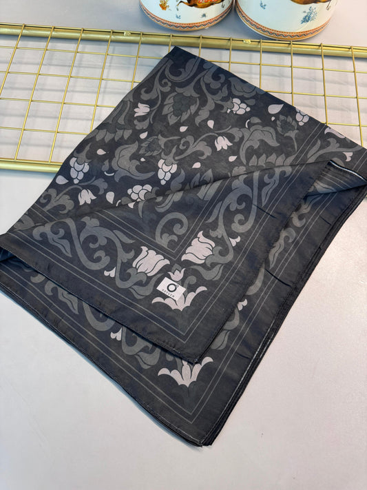 Lilyum Desen Pamuk İpek Şal-10008-Füme
