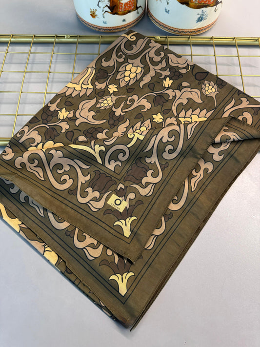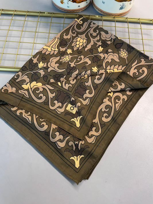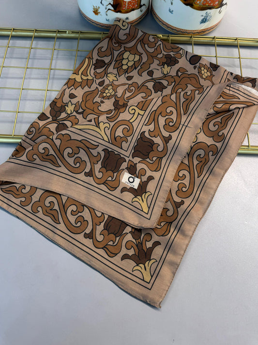 Lilyum Desen Pamuk İpek Şal-10008-Kahve