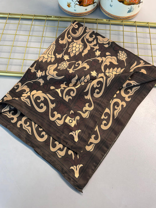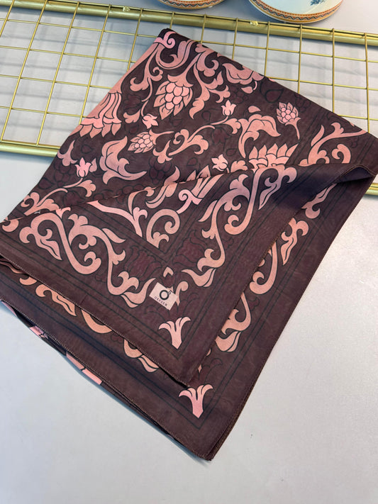Lilyum Desen Pamuk İpek Şal-10008-Çikolata