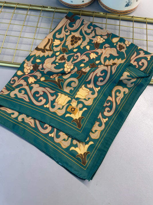 Lilyum Desen Pamuk İpek Şal-10008-Yeşil
