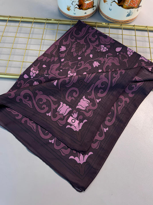 Lilyum Desen Pamuk İpek Şal-10008-Mürdüm