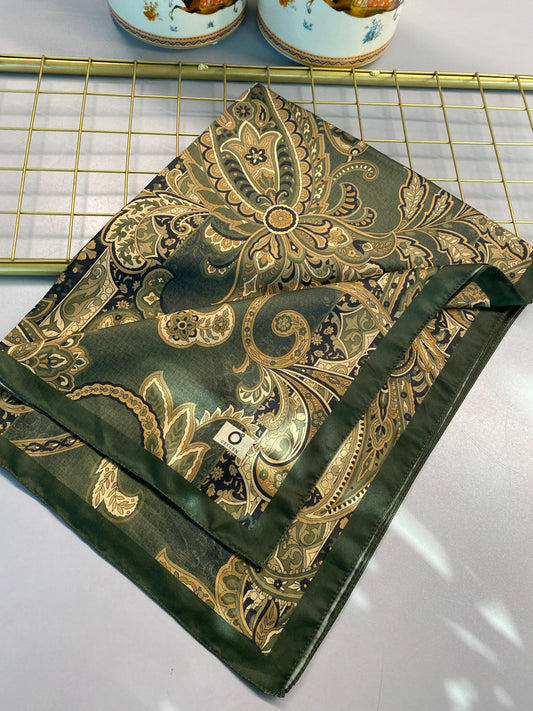 İnci Gecesi Desen Pamuk İpek Şal-10004-ASKER YEŞİLİ