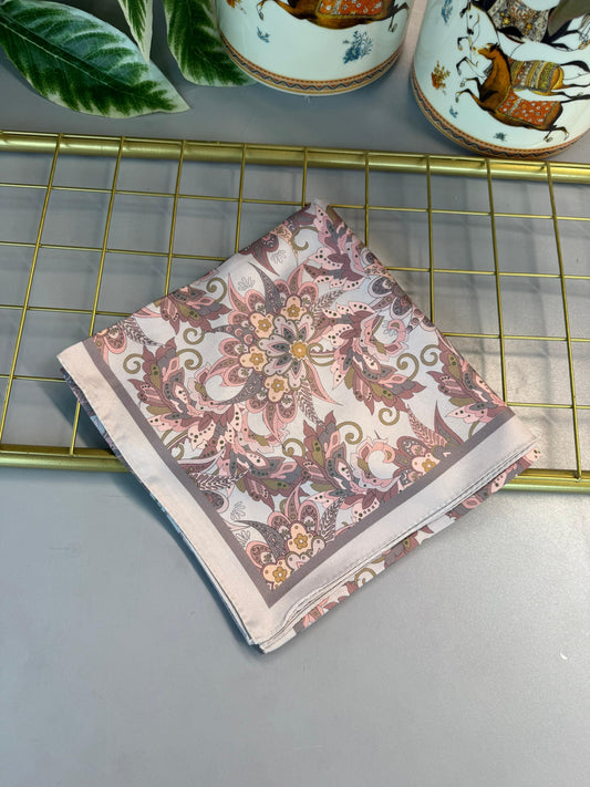 Mimoza Desen Vual İpek Eşarp-6203408-Pamuk şekeri