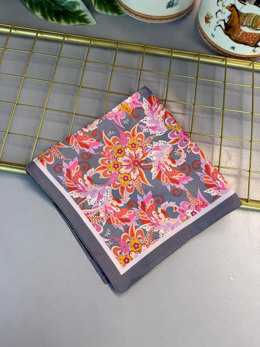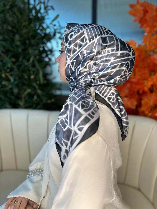 Oxxo Desen Vual İpek Eşarp-6203662-Füme
