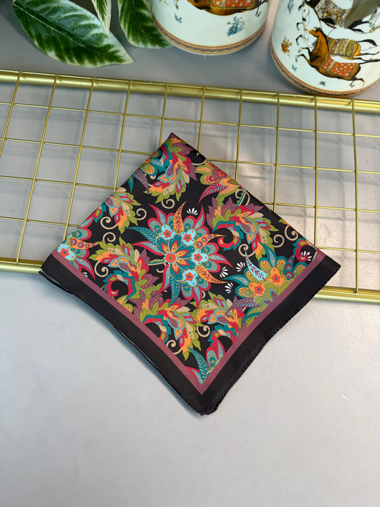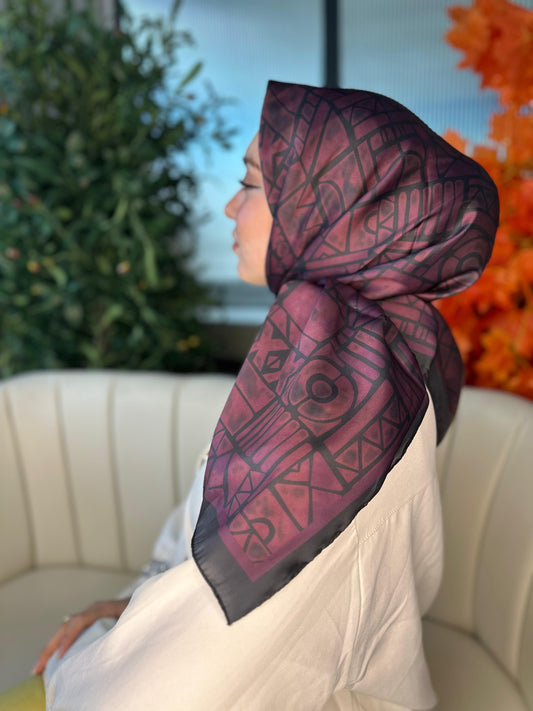 Oxxo Desen Vual İpek Eşarp-6203662-Siyah-Bordo