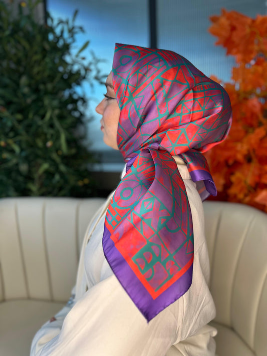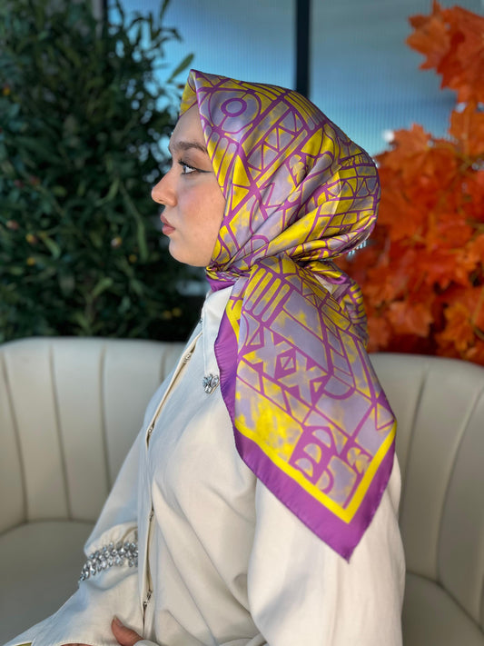 Mimoza Desen Vual İpek Eşarp-6203408-Mor