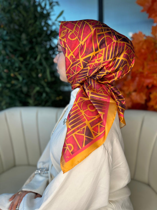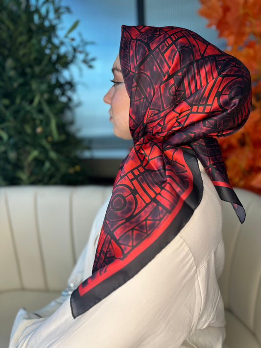 Oxxo Desen Vual İpek Eşarp-6203662-Kırmızı