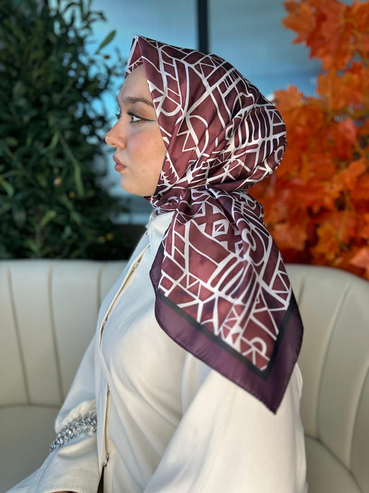 Oxxo Desen Vual İpek Eşarp-6203662-Kahve