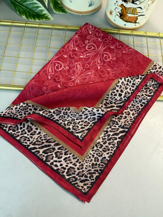 TINY LEOPAR PAMUK DESEN ŞAL-6202616-KIRMIZI