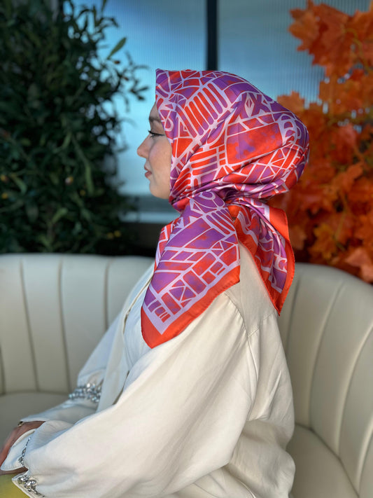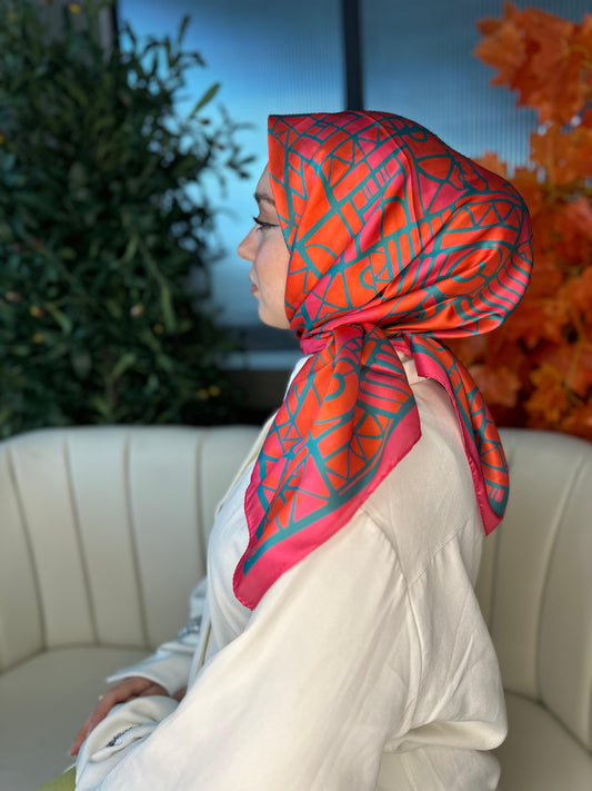 Oxxo Desen Vual İpek Eşarp -6203662-Oranj
