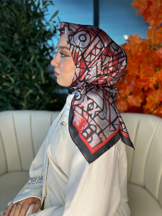 Oxxo Desen Vual İpek Eşarp -6203662-Gri