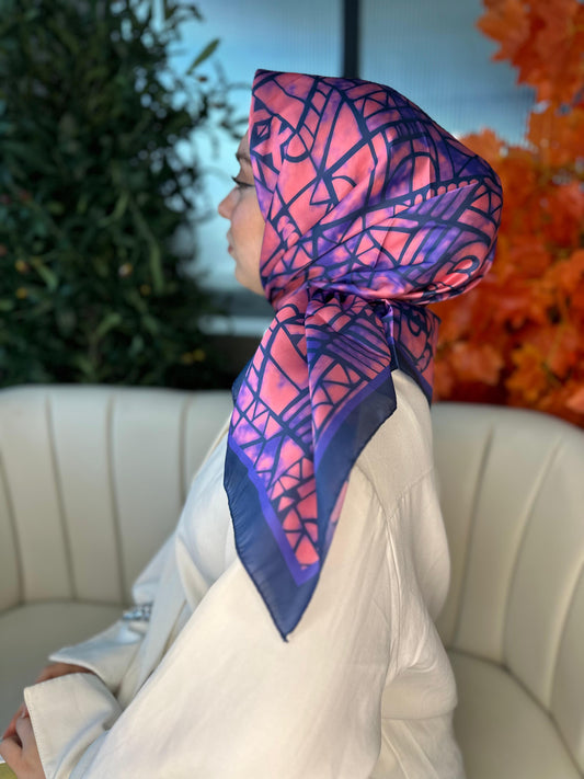 Oxxo Desen Vual İpek Eşarp -6203662-Pudra Pembe