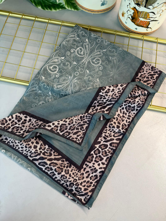 Ala Leopar Desen Naturel Pamuk Şal-Gri