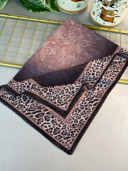Ala Leopar Desen Naturel Pamuk Şal-Küllü kahve