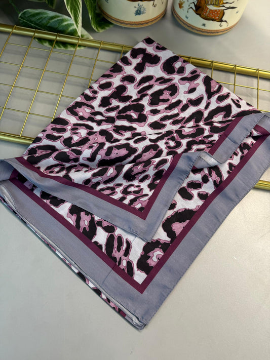 Leopare Desen Pamuk İpek Şal-6202761-Derin mor