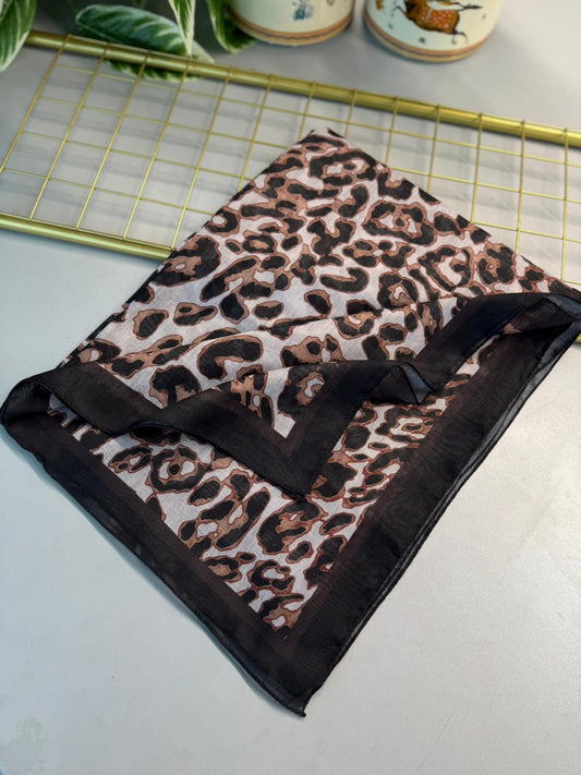 Leopare Desen Pamuk İpek Şal-6202761-Acıkahve