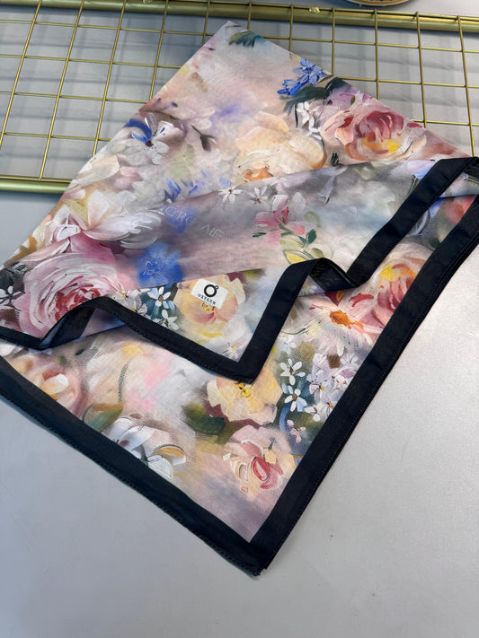 Mystic Bloom Desen Pamuk İpek Şal-Pastel