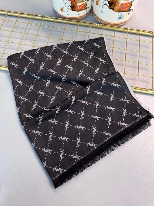 Ysl Desen Kendinden Dokulu Desenli İtalyan Şal-10010-Siyah