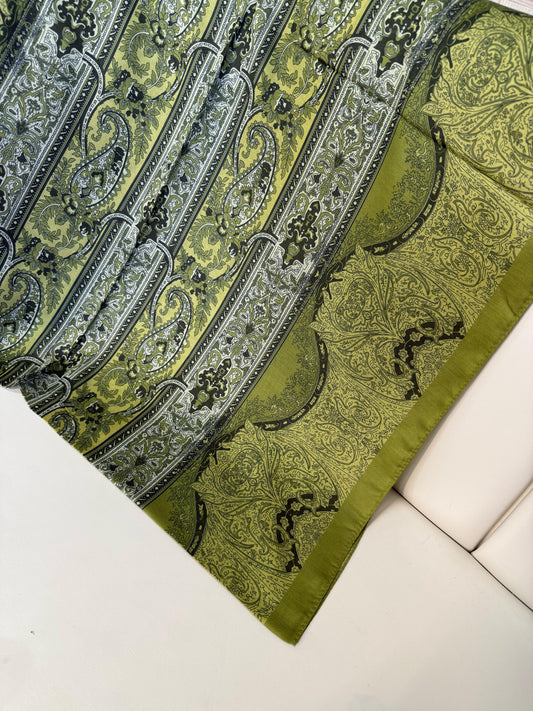 Sarmaşık Desen Pamuk İpek Şal -41200- Yağ Yeşili