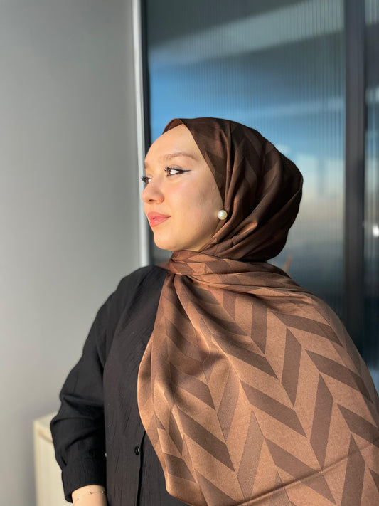 Eğimli Baklava Desen İpeksi Jakar Şal - 741256 - Çikolata